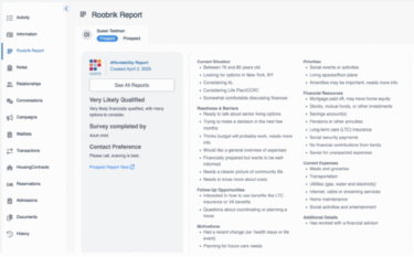 Families researching senior living often need guidance before they’re ready to talk. Roobrik bridges that gap, engaging visitors with Surveys and Chat experiences that provide empowering decision support while revealing readiness insights for your sales team.